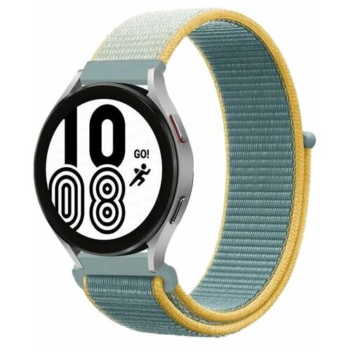 Ремешок для смарт-часов, фитнес-браслета Xiaomi, Samsung, Huawei, Honor универсальный 22 мм нейлоновый тканевый браслет, бирюзовый с желтой полоской бирюзово-желтый