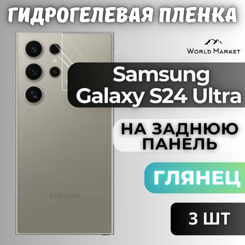 Комплект 3шт. Защитная гидрогелевая пленка на Samsung Galaxy S24 Ultra / глянцевая на заднюю панель / Противоударная бронепленка с эффектом восстановления на Самсунг Галакси С24 Ультра