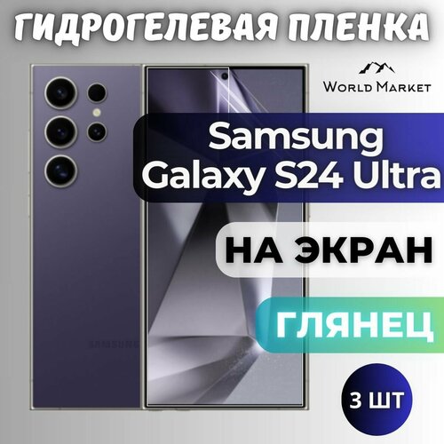 Комплект 3шт. Защитная гидрогелевая пленка на Samsung Galaxy S24 Ultra / глянцевая на экран / Противоударная бронепленка с эффектом восстановления на Самсунг Галакси С24 Ультра