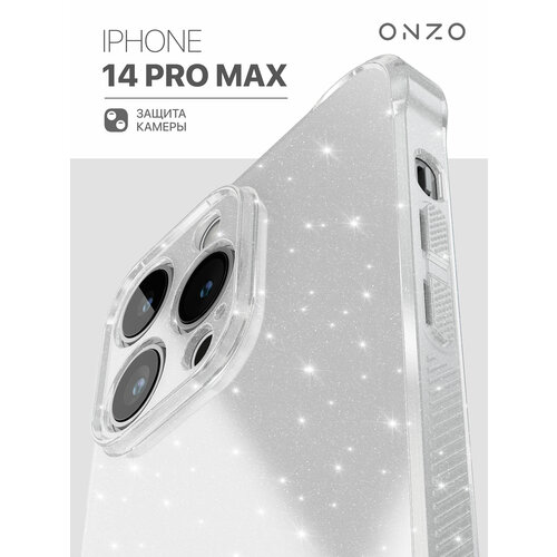 Айфон 14 Про Макс противоударный белый с блестками Чехол iPhone 14 Pro Max