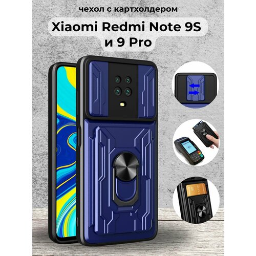 Чехол на Xiaomi Redmi Note 9S и 9 Pro / Редми Ноте 9S и 9 Про противоударный с картхолдером (Темно-синий)