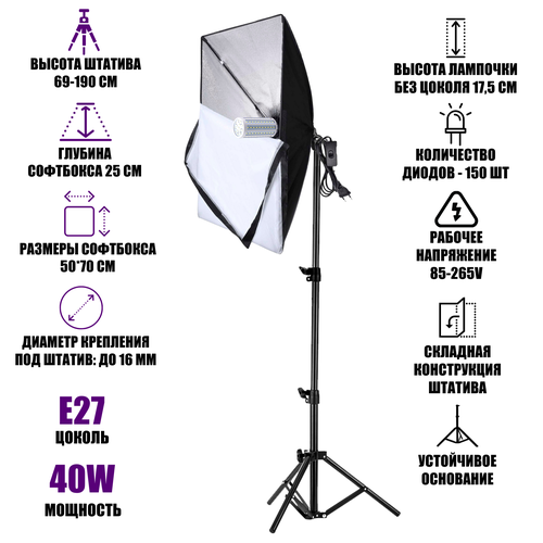 Студийный свет софтбокс 50х70 см с держателем на 1 лампу на штативе JBH и лампочка 40W