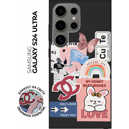 Силиконовый чехол на Samsung Galaxy S24 Ultra / Самсунг С24 Ультра с рисунком "Cute Stickers" Soft Touch черный