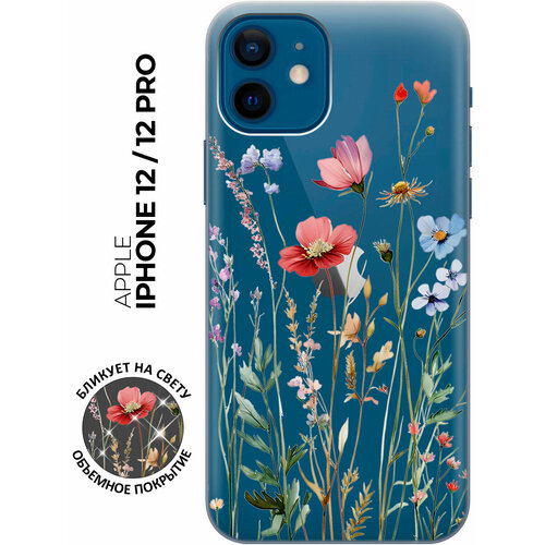 Силиконовый чехол на Apple iPhone 12 / 12 Pro с принтом "Милые цветочки" прозрачный