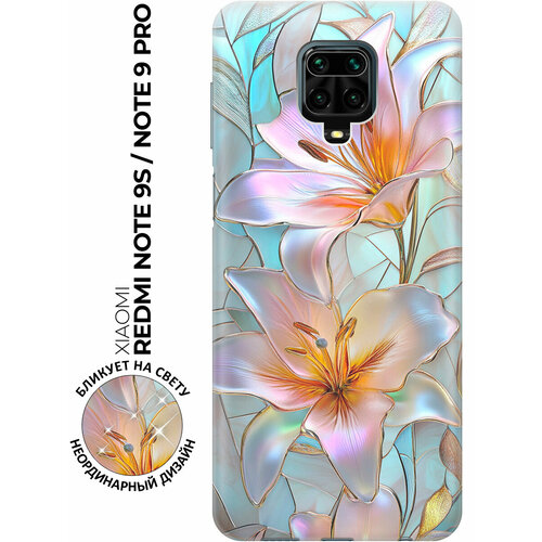 Силиконовый чехол на Xiaomi Redmi Note 9s / Note 9 Pro с принтом "Витраж с лилиями"