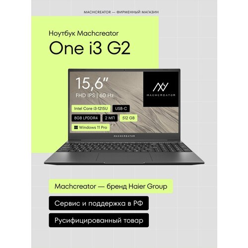 Ноутбук для работы и учебы Machcreator One i3 G2 15,6" IPS FHD 60 Гц, 8 Гб/512 Гб, Intel Core i3 1215U, Intel UHD Graphics, Windows 11 Pro, русская раскладка, серый
