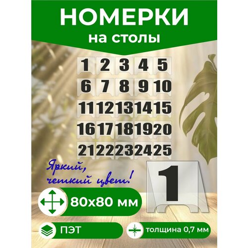 Табличка с номером на стол Табличка настольная для кафе, ресторанов, баров 1-25 Комплект 25 шт