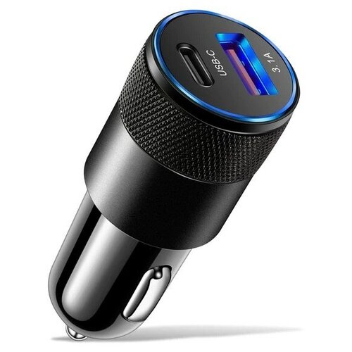 Автомобильное зарядное устройство USB Type C+ USB 15W Black