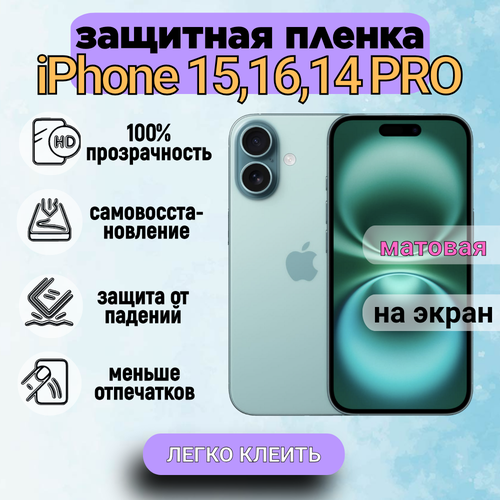 Гидрогелевая полиуретановая пленка на iPhone 15, iPhone 16, iPhone 14 PRO, матовая