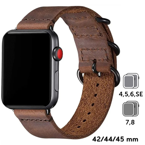 Кожаный ремешок для Apple Watch 42-44-45 мм, браслет из кожи для часов Apple Watch series 1-7 SE, ремень (Brown1) коричневый, размер S (запястье 135–150 мм), XL (запястье 180–200 мм), М (запястье 150–160 мм), L (запястье 160–180 мм)