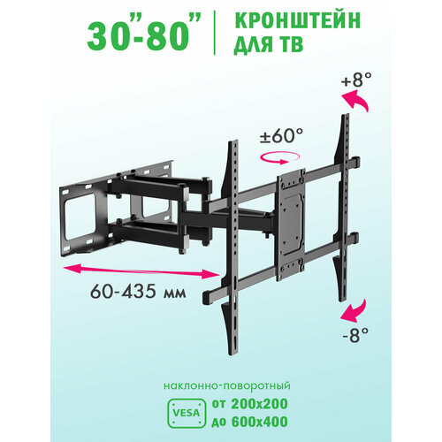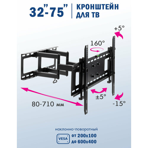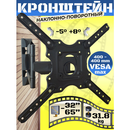 Кронштейн для телевизора настенный поворотно-наклонный диагональ 32"- 65", нагрузка 31.8 кг