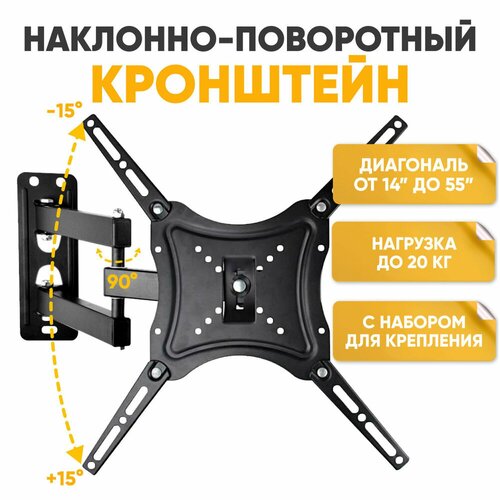 Кронштейн для ТВ LED/LCD телевизора 14-55 до 20 кг дюймов наклонно-поворотный (VESA 100x100,200x100,200x200,100x200) мм