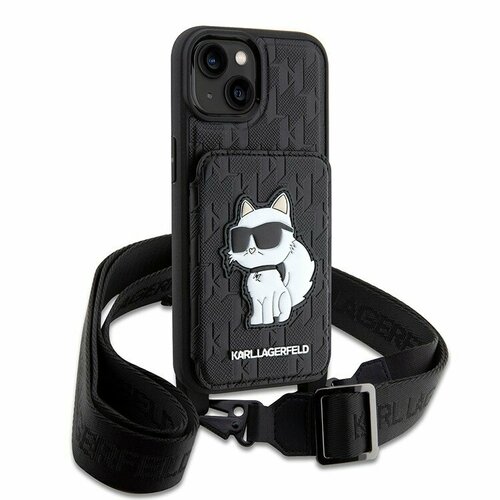 Karl Lagerfeld чехол с ремешком и картхолдером для iPhone 15, кожа Saffiano Monogram NFT Choupette