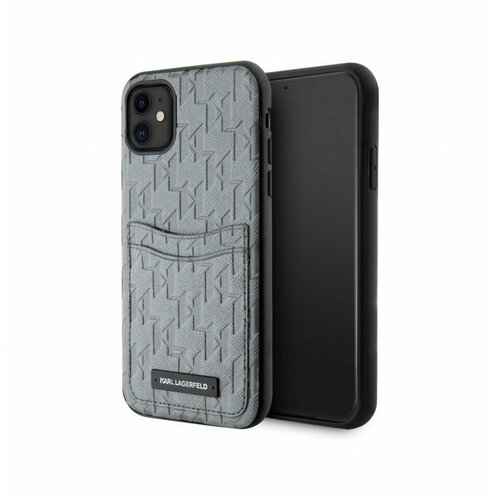Чехол Karl Lagerfeld PU Saffiano Monogram with Cardslot Hard для iPhone 11, цвет Серебристый (KLHCN61SAKLHPPG)
