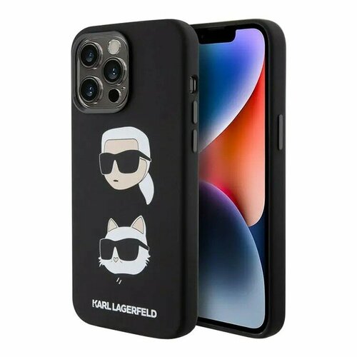 Karl Lagerfeld для iPhone 15 Pro Max чехол Liquid Silicone Karl & Choupette heads Hard Black