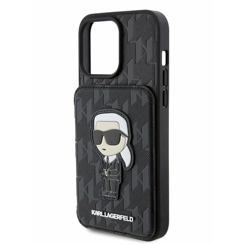 Lagerfeld для iPhone 14 Pro Max чехол Cardslot Stand PU Saffiano Monogram NFT Karl Ikonik Hard Black