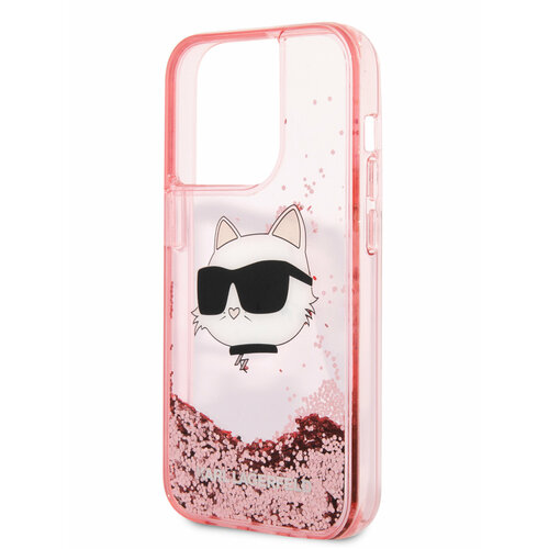 Lagerfeld для iPhone 15 Pro Max чехол Liquid Glitter NFT Choupette head Hard Pink