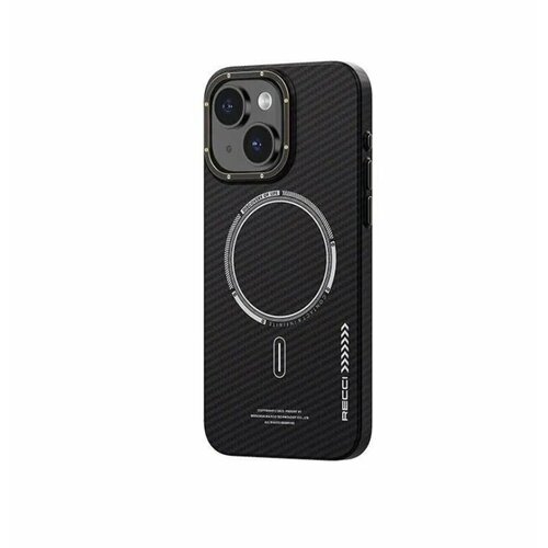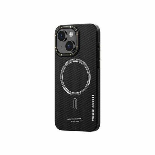 Чехол для iPhone 15 6.1", RECCI Ultra Magnetic Case Carbon Slim Series, Черный