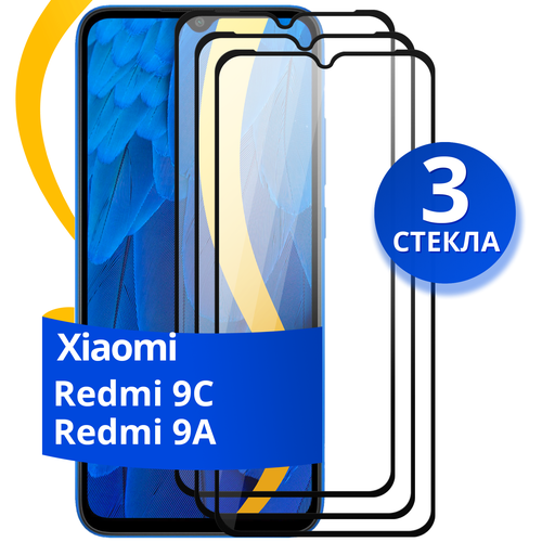 Комплект из 3 шт. Глянцевое защитное стекло для телефона Xiaomi Redmi 9C и Redmi 9A / Противоударное стекло на cмартфон Сяоми Редми 9С и Редми 9А