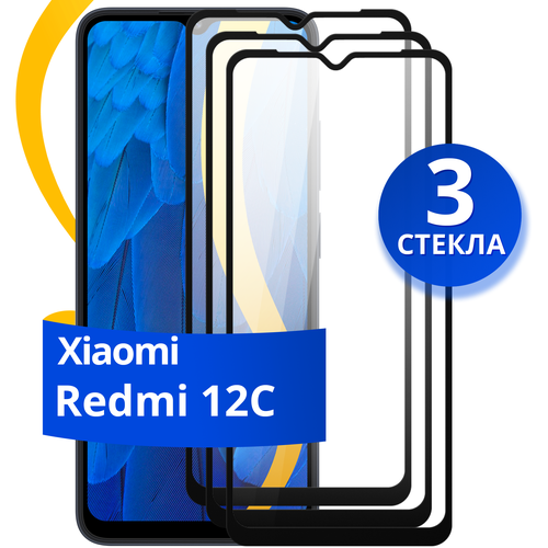 Комплект из 3 шт. Глянцевое защитное стекло для телефона Xiaomi Redmi 12C / Противоударное стекло с олеофобным покрытием на смартфон Сяоми Редми 12С