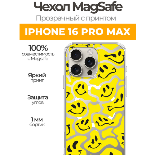 Чехол на Айфон 16 Про Макс (Apple iPhone 16 Pro Max) MagSafe с магнитом и принтом Расплывчатые смайлики желтые