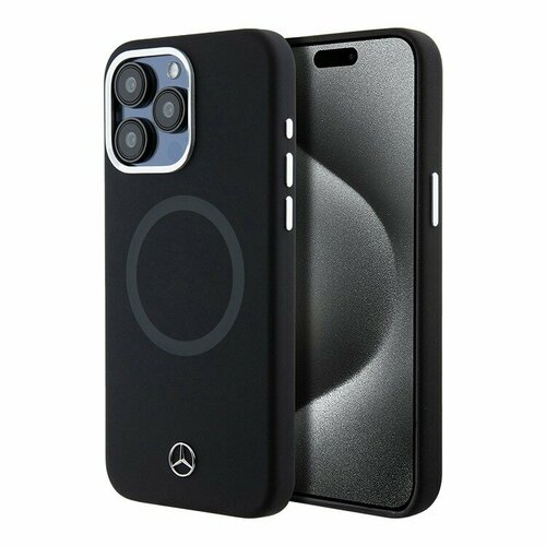 Mercedes чехол силиконовый для iPhone 15 Pro Max Liquid silicone Bicolor Laser Ring Black (MagSafe)