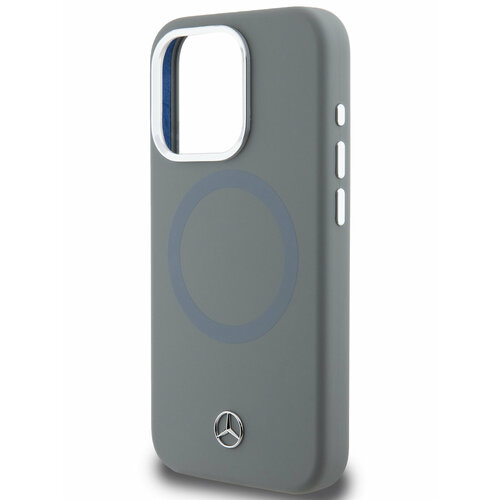 Mercedes для iPhone 15 Pro чехол Liquid silicone Bicolor Laser Ring Hard Grey (MagSafe)