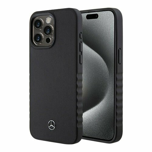 Mercedes для iPhone 15 Pro Max чехол кожаный Leather Plain Smooth Hard Black