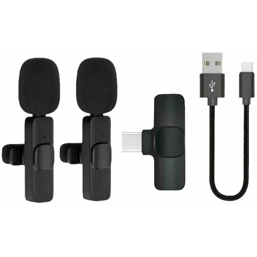 Микрофон беспроводной петличный, Комплект 2 микрофона петлички с разъемом Type-C для Android, Петлички для стрима, Черный черный