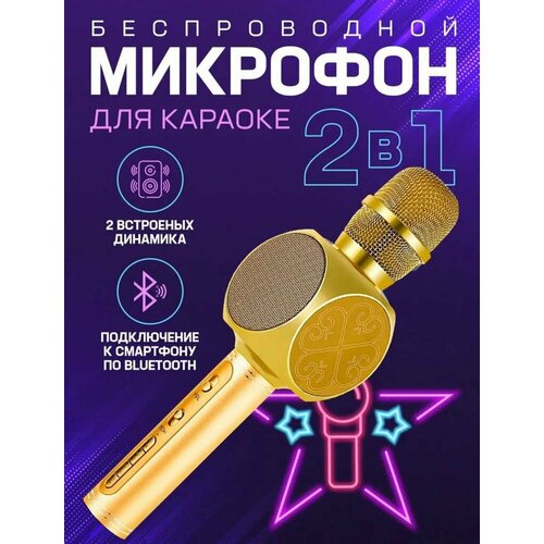 Оригинальный караоке-микрофон WSTER WS-858 с колонкой, Bluetooth, портативный, 5Вт, 1800mAh, золото