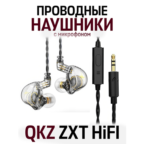 Наушники-мониторы QKZ ZXT с гарнитурой Басс Спорт - Hi-Res Аудио, прозрачный
