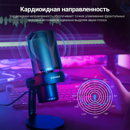 Микрофон для для компьютера игровой ECOVINKA GM7 PRO, RGB-подсветкой, Совместим с монитором ECONINKA FT27A Pro