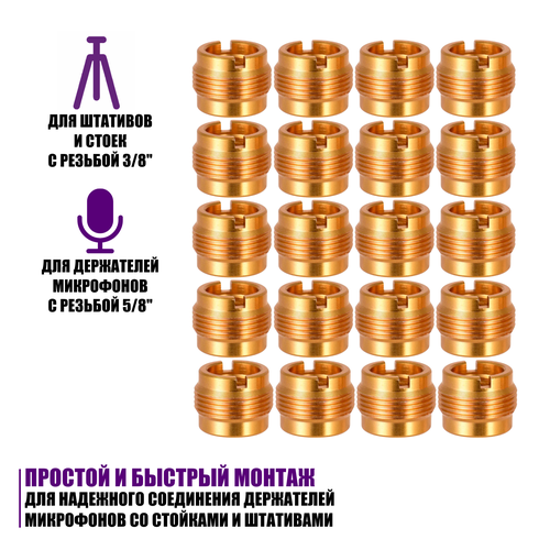 Металл переходник, внутренняя резьба 3/8", внешняя резьба 5/8", для держателей микрофонов, 20 шт