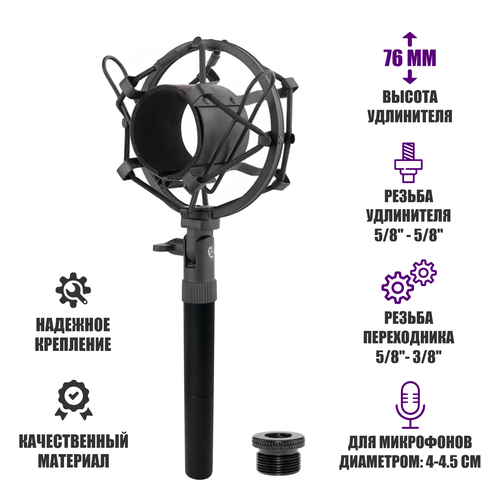 Металлический держатель паук PM-5/8-U для микрофона противоударный с удлинителем крепления