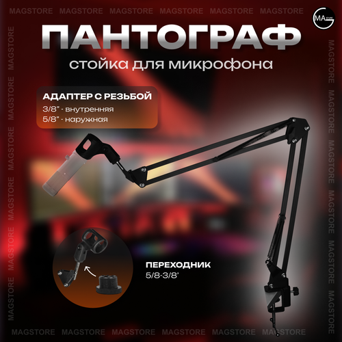 Настольная стойка пантограф с держателем микрофона паук металлический, поп-фильтром 15,5см на струбцине для вертикального и горизонтального крепления