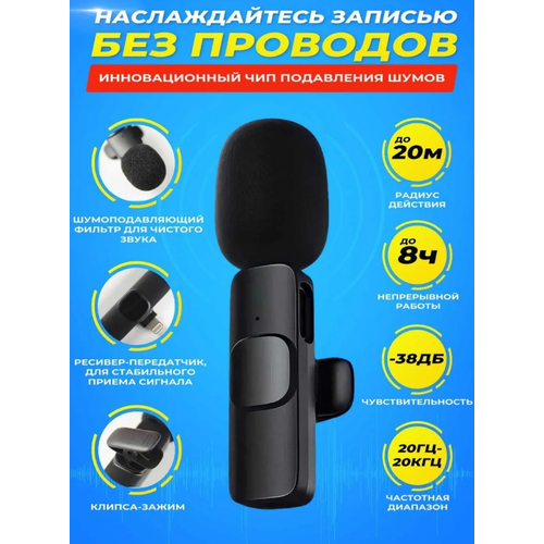 Беспроводной микрофон-петличка К8/STYLISH SOUND/ Type-C/20000Гц/чистый звук/для записи прямых эфиров/черный