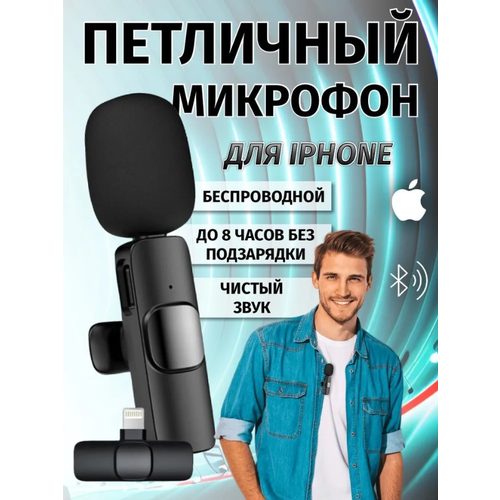 Микрофон беспроводной петличный, Микрофон с разъемом Lightning для iPhone, Петличка для стрима, конференций, Черный