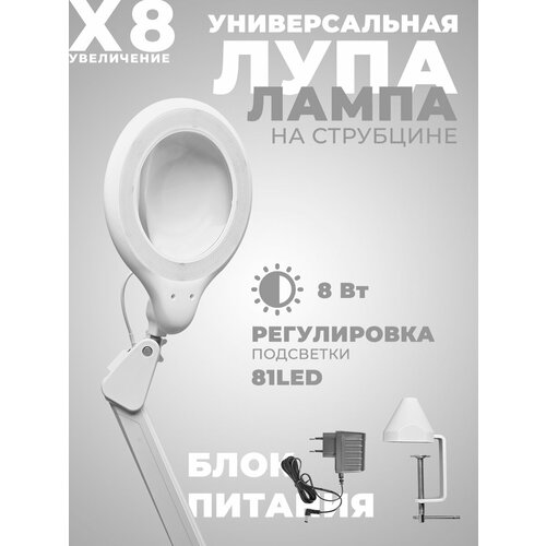Лупа настольная X8 на струбцине с подсветкой 81LED и регулировкой подсветки 9827K