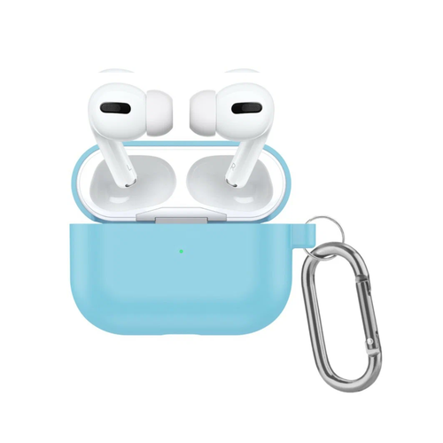 Чехол силиконовый для наушников Airpods Pro 2, с карабином, небесно-синий