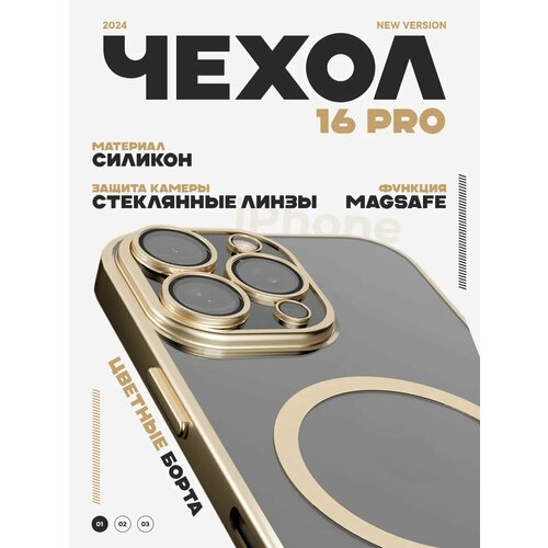 Чехол на iPhone 16 Pro прозрачный силиконовый Magsafe
