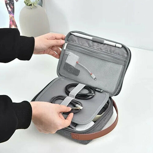 Сумка-органайзер для проводов и аксессуаров WiWU , 21x15.5x6.5 см, Серый