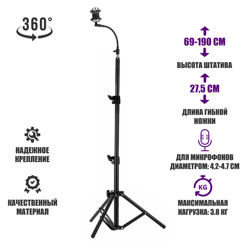Быстросъемный гибкий держатель микрофона металл паук на напольной стойке JBH