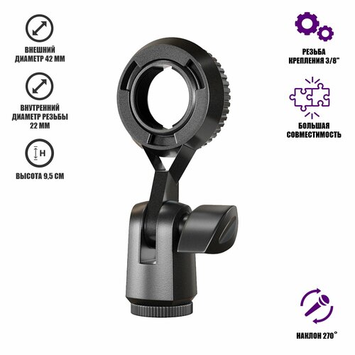 Держатель для ручного микрофона на зажиме до 4,7 см с поворотом на 360 градусов