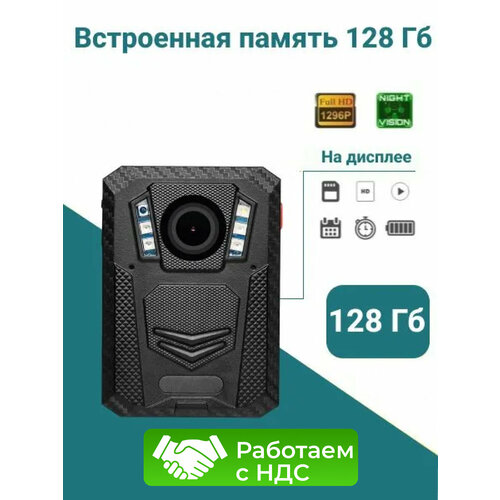 Нагрудный видеорегистратор RIXET RX16 128 Гб GPS с разрешением Super Full HD и с ночным видением, персональный носимый регистратор на одежду, нательная цифровая камера