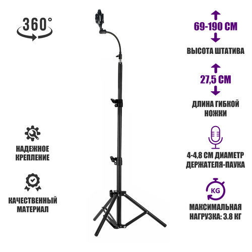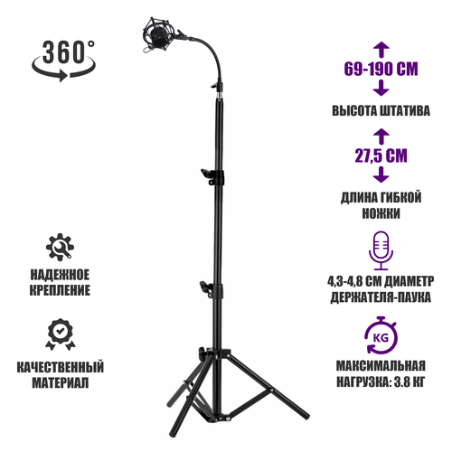 Быстросъемный гибкий держатель микрофона пластиковый паук P2 на напольной стойке JBH
