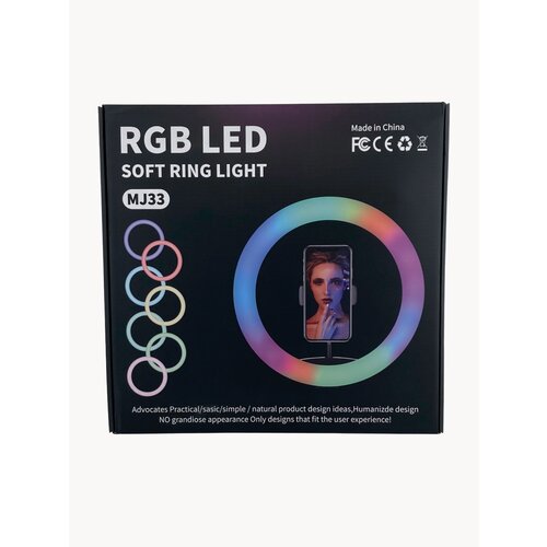 Кольцевая лампа LED RGB 33см питание от USB пульт селфи кнопка регулировка яркости цвета 31 режима + штатив металл 220см