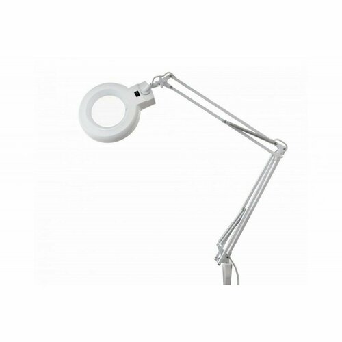 белыйКвадратная настольная лупа белого цвета на струбцине с 3 диоптриями (увеличение 1.75 раза) с бестеневой люминесцентной подсветкой REXANT предназначена для визуального увеличения различных мелких предметов или их фрагментов. Она используется в косметологии, в тату-салонах, при выполнении ювелирных и радиомонтажных работ, в биологии и медицине, в швейном и вышивальном деле, для организации труда людей со слабым зрением, а также для других работ, где требуется увеличение и подсветка рабочего поля. Основные преимущества: стеклянная линза обеспечит наиболее четкое изображение без искажения; всесторонняя подсветка; удобный пантографический механизм, состоящий из звеньев, и хорошая устойчивость; рабочий радиус регулировки механизма 100 см; фиксация к любой поверхности; встроенный электронный блок управления. Технические особенности: размер линзы: 150x180 мм; потребляемая мощность: 18 Вт.