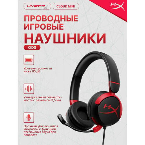 Игровые проводные наушники HyperX Cloud Mini, 1.2м, 20Гц-20кГц, складывающиеся, с микрофоном, черный, 7G8F4AA