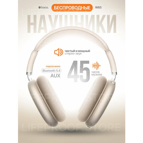 Беспроводные полноразмерные наушники Hoco W65 с аккумулятором на 45 часов, BT 5.4, цвет Бежевый