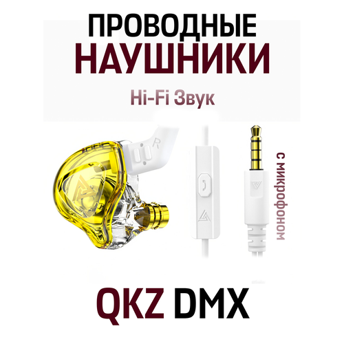 Внутриканальные наушники QKZ DMX проводные Hi-Fi наушники с гарнитурой, 3.5 мм mini jack, желтый